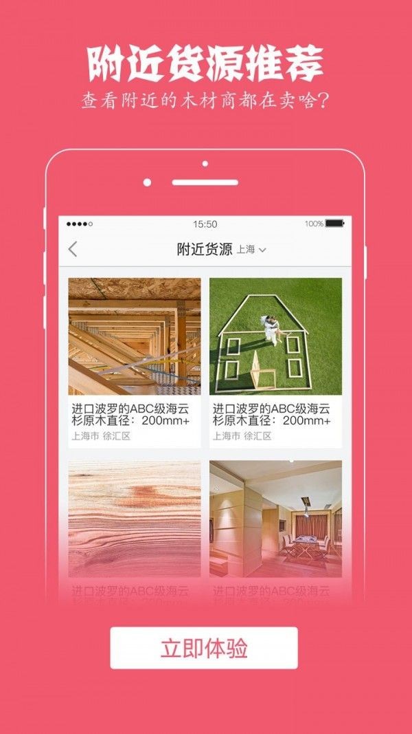 在线查看木材质量等,在全国寻找精确品质好的木材,app有最好的货源,用户可以直接发布需求,商量好后可以通过视频查看来寻找自己想要的木材。