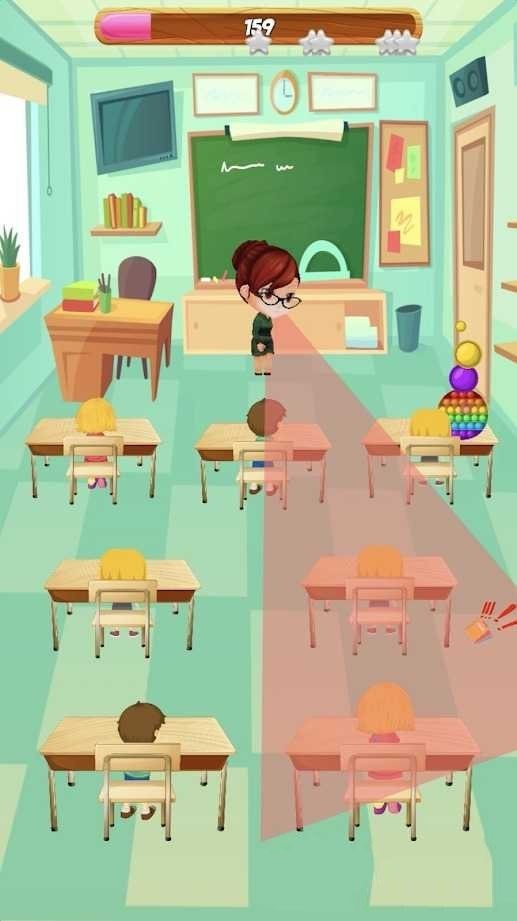 这款游戏的场景氛围刺激感带你一秒回归课堂,老师转过来也是有一个视野盲区的,你在老师的视野盲区中还可以继续偷玩,非常的紧张刺激,快来下载试玩一下吧!