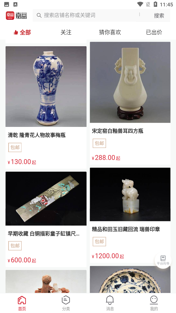 嘉盒在线,国内文玩艺术品在线社交拍卖平台,融合了文玩艺术品在线交流、拍卖的多样形式,打破了地域的限制,时间的限制,打破传统,革新了文玩艺术品市场交易规则。拍品覆盖书画篆刻,珠宝翠玉,陶瓷紫砂等上百个品种,支持权威机构免费鉴定。有漏可捡,有宝可淘!