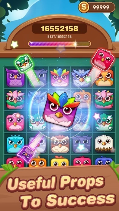 卡通风格的鸟类消除游戏,很酷的消除效果,不同颜色的鸟消除效果是不同的。