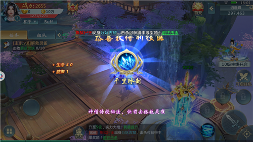 1、神仙世界与你同行,九州世界四海八荒战场PK纵横交错。
