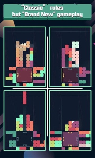 喜欢这种风格游戏的玩家们,不妨来试一试这款游戏吧!旋转俄罗斯游戏依旧维持着简单轻松的游戏方式和节奏,易于上手。目标也和经典游戏一样单纯,通过对积木的调整,摆放,填满整行方块便可以消除这一行方块。在这基础上增加了底座儿的旋转,增加了大量的变化和可操作性,但是,乐趣依旧,开心依旧~
