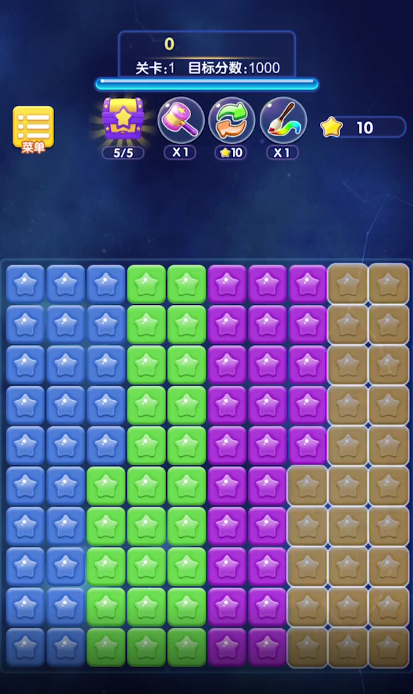 5、星星颜色的分类也是比较少的,能够保证每一次消除带走一大片。