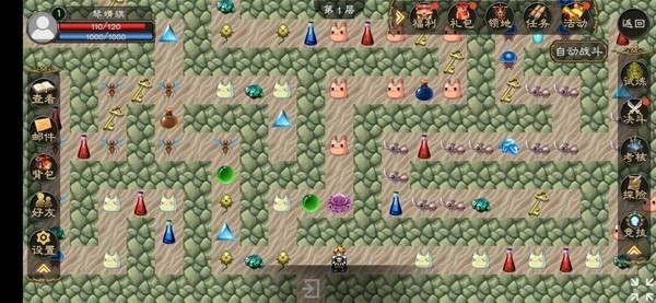 你有了上面说的技能和装备开局了。你会一路起飞没有任何对手。打到5级。可以弄宠物了。宠物获取简单,试炼开起了。直接打试炼,可以不用推图了。打试炼出魔晶。5级一直打到打不动,这个时候我估计你的宠物也版了几个普通的了。然后升级到士。这个时候推图到你升级到10级。打试炼第二个。下面详细说试炼怎么打个探险。