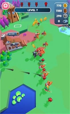 招募游戏中零散的人员,让你的队伍可以不断变强,这个世界中还会出现各种道具,强化你的作战能力,在商店中还能解锁各种,高级的士兵种类,不断强化你的战斗力,打造一只超强大的队伍,游戏战斗中可以发挥更强实力,在这击败更多敌人。