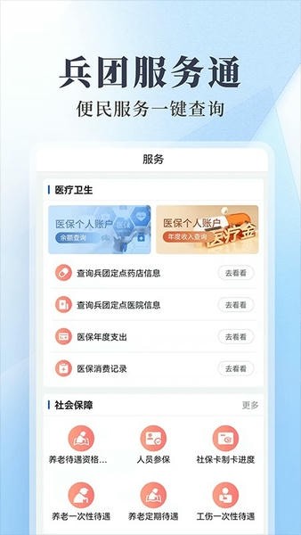 兵团政务中心服务网,兵政通,是新疆生产建设兵团打造的政务中心服务手机软件。它以智能方式聚合信息,以数字方式描绘用户,并使用户的文档、约会、需求、收藏和其他信息一目了然。同时,基于时间、空间、人群和实用性,推广高品质