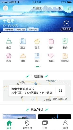 十堰智慧旅游客户端涵盖资讯、景区、线路、住宿、美食、特产、娱乐、租车等实用性内容,并提供咨询、 设置等互动性和个性化内容,还开设了十堰概况栏目,为游客提供游十堰的一站式解决方案,成为游客装在口袋里的百科全书。