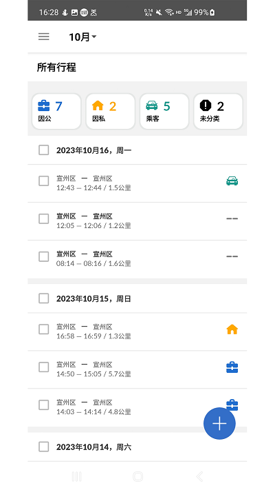 只要轻松一划,就能区分因私、乘客和因公行程。