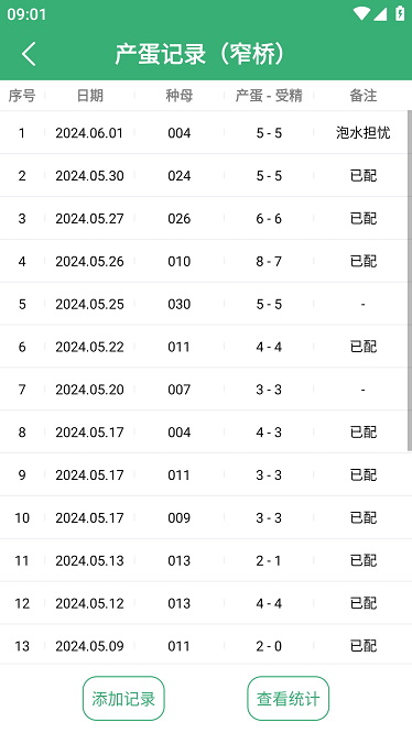 数据统计分析:可以随时查询受精率、孵化率、全品率等关键指标,便于用户进行数据分析。