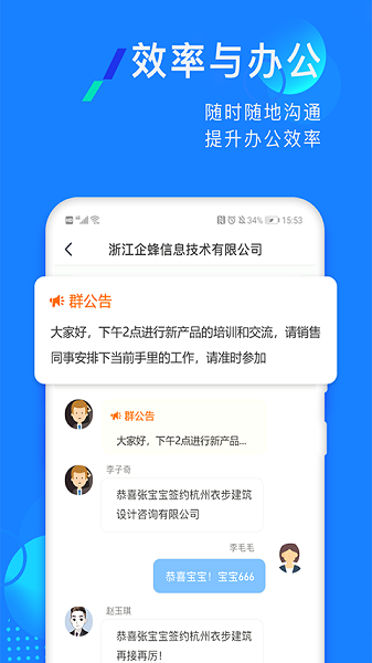 企蜂云手机版下载提高企业员工整体的办事效率,给用户带来便捷帮助的应用,能够帮助用户归纳收集顾客信息,并进行排列,让用户随时都能与客户进行沟通,处理客户所需要的要求,欢迎感兴趣用户来下载试试哦!