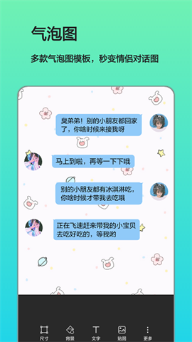 app提供了多款气泡模板图,可以制作可爱的情侣对话框,能够帮助用户更好的获得朋友们的点赞