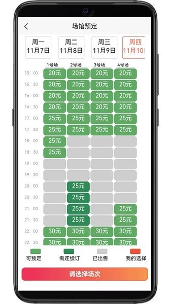 找球馆app通过直连各球馆本地管理系统,拥有实时数据。可以像在线电影订票系统一样选馆选场地。
