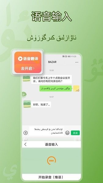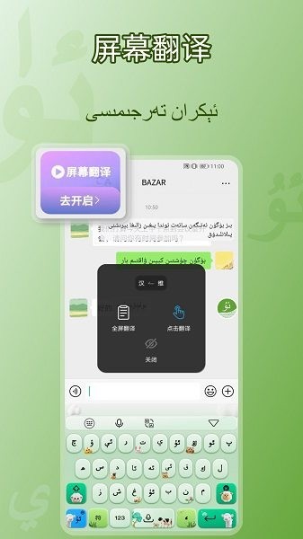 BAZAR维文输入法安卓版下载一个强大的维文输入应用,可以快速的识别维语和维文的输入,还支持快速汉维翻译、维英翻译等,键盘个性设置多,很多有趣的表情包和皮肤使用,欢迎有需要用户来下载试试哦。