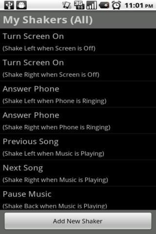 晃动启动屏幕工具只要晃动手机就可以激活屏幕,减少了按开机键的次数,解放你的电源键。还可以控制音乐的播放和接听电话,很实用!