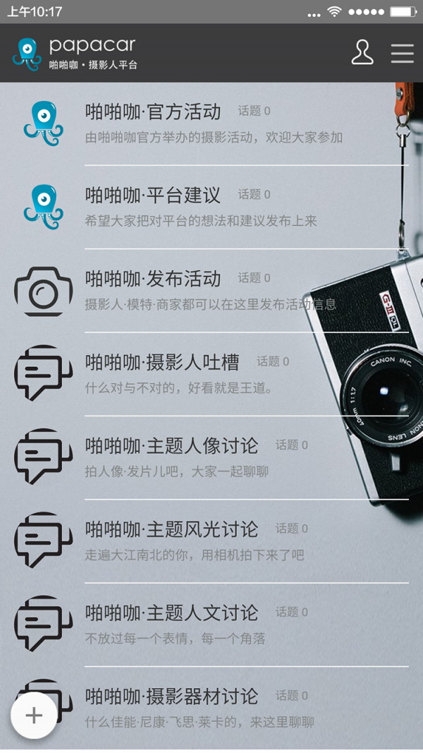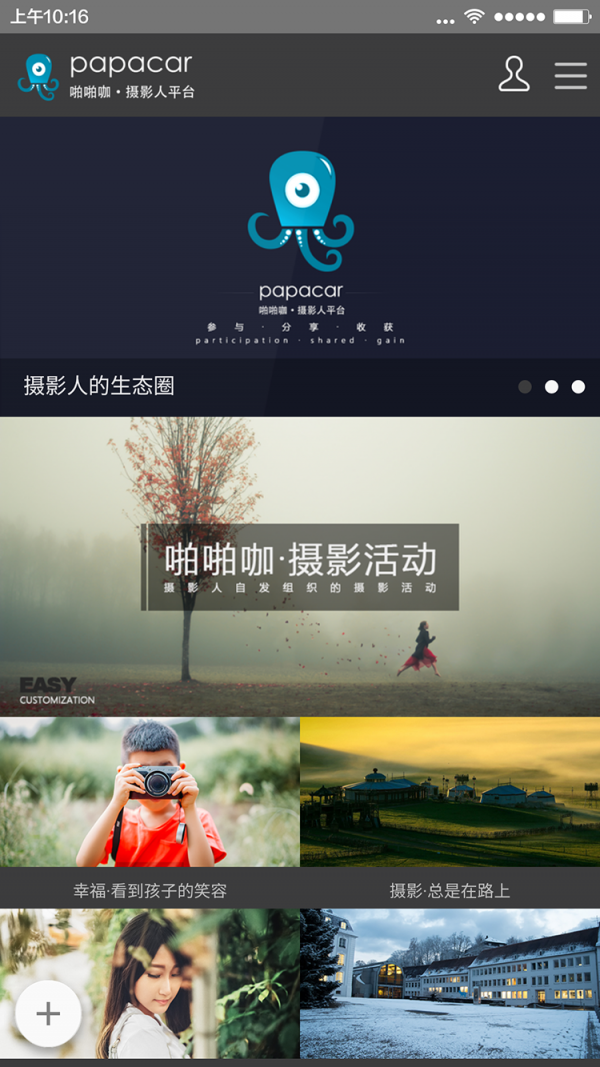 啪啪咖(papacar)是智趣创造(北京)科技有限责任公司旗下、为摄影人提供摄影活动、交流、分享等服务的手机端应用产品。