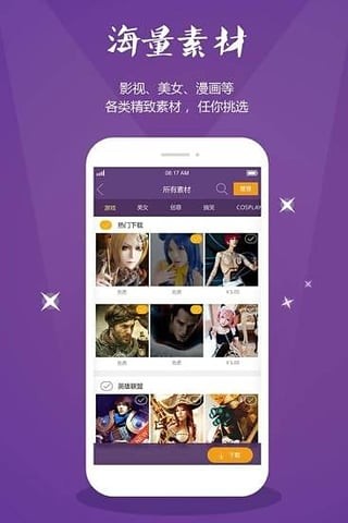 海量素材:各类素材,任你挑选,社区互动,结交COS达人;