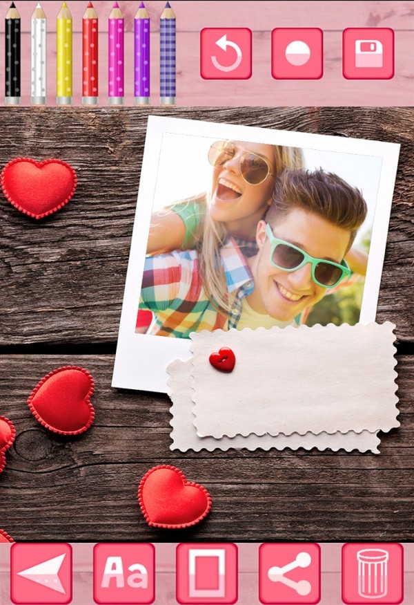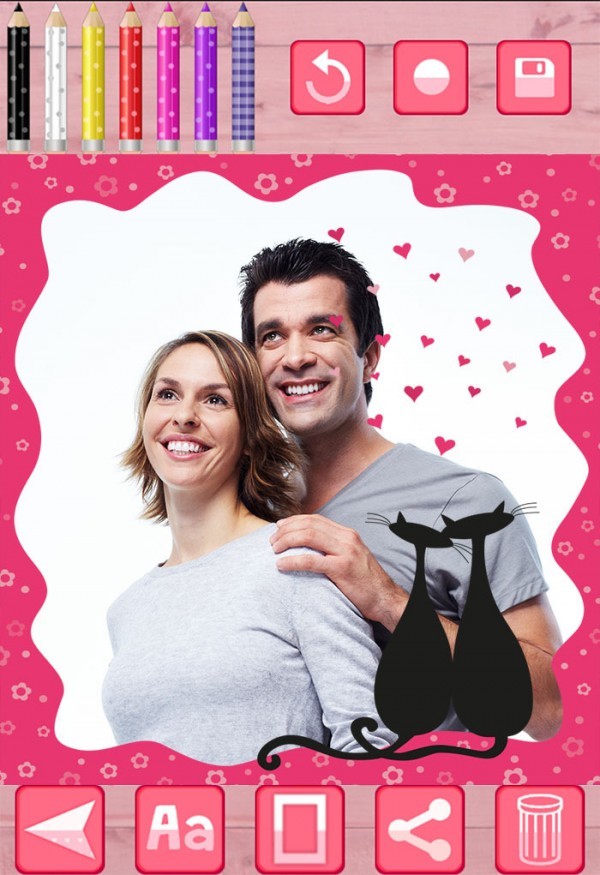 这是一个让人惊叹的浪漫爱情贴纸相框相机!你可以用这款照片编辑器对相片进行图片编辑得到各种P图效果,用爱心制作唯美情人节约会婚礼纪念日表白贺卡片礼物。通过这个浪漫爱情人节贴纸相框相机,你可以移动、旋转相框,调整相片图片的大小,使最后得到的图片完全符合自己的喜好。你可以把用爱心p图编辑后的图片保存并和爱人家人或朋友们分享。