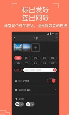 4、充斥着各类时尚穿搭、闺蜜、萌宠、暖男图片,用户们看到心动时不自觉就把内容分享到了朋友圈、微博等其他社交空间。