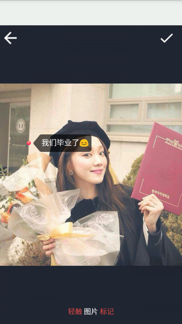 提供标签和表情符号,提醒添加标签和表情符号,微笑,让您的照片更时尚。