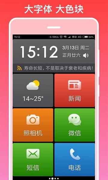 银美老人桌面是基于安卓系统开发的老人桌面,是符合50 +人群使用习惯与特点的老人桌面,简单、实用,有助于中老年人更便捷的使用智能手机。