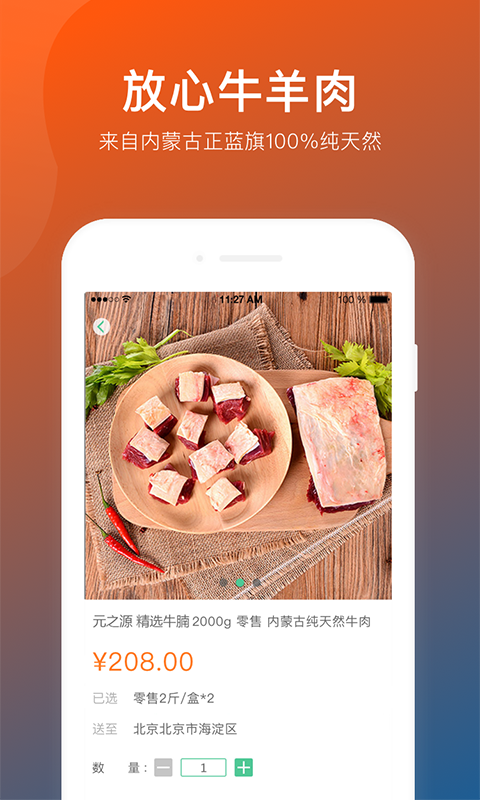 来自纯净自然的内蒙古正蓝旗牛羊肉。