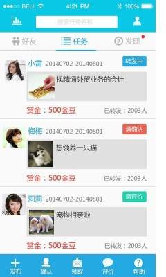 自己想领养一只考拉做宠物,很难,大能之人就潜伏在你的身边,悬赏令帮你实现千奇百怪的想法。 你深藏独门技能却苦于没有展示的舞台?悬赏令给你一鸣惊人的机会,让你的朋友对你刮目相看。 有需要的朋友和有能力的朋友通过你而建立联系,实现了他们的愿望,悬赏令给你成就感,还有意外惊喜哦! 是时候告别荷尔蒙型手机社交应用了,开启一段健康、真实、有趣的互联网社交之旅吧!