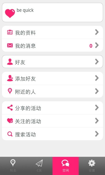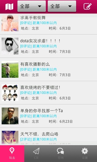 C悠一款交友软件,里面的一些小功能还是蛮有意思的,比方说你周末不知道去哪里玩,可以找一些感兴趣的内容,然后看有没有小伙伴一起等等。