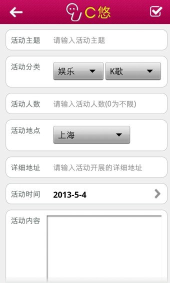 C悠帮您解决闲暇时间不知道找谁玩,不知道玩什么,不知道怎样玩出意义和价值的问题。