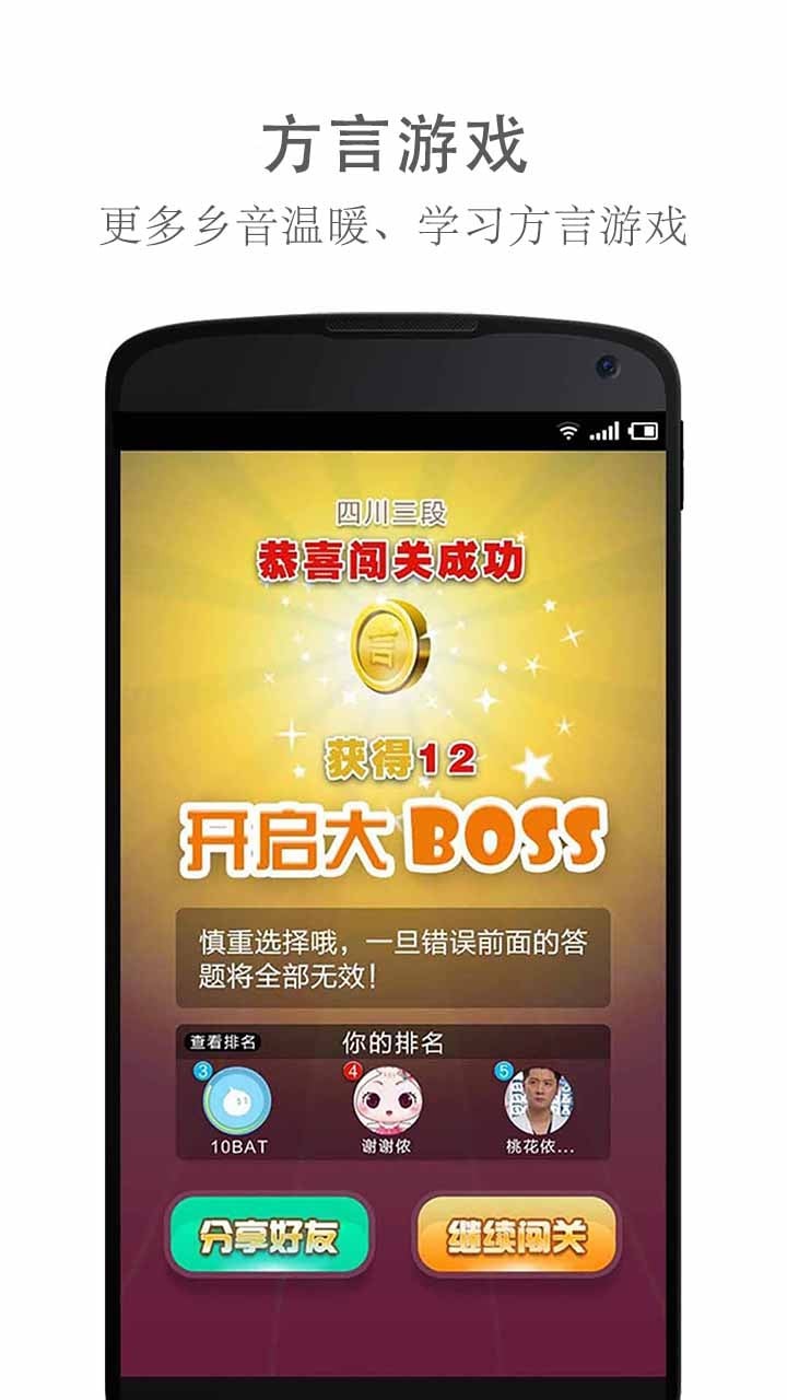 【方言游戏】方言游戏,乡音闯关,北京话、粤语、山东话、四川话、东北话、上海话、湖南话、湖北话,各地方言全囊括,看你能听懂多少地方的方言,游戏之余还能学习各地方言。