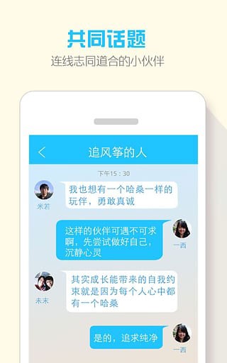 同话,一款集合话题聊天和匿名聊天以及分享圈子生活话题的社交软件,交友从未如此有效而直接。这里由各种有趣的自绘轮播图诉说每天的最新时事或者热点话题,千万用户因此而集结。神秘的匿名聊天功能,放下生活的伪装,真正地去做自己,畅所欲言,无所畏惧。而在生活当中的快乐可以随时定格在圈子功能当中,海量话题图片任你浏览和分享,一击命中万千斑斓生活!同话里,不都是骗人的!因为美好看得见!