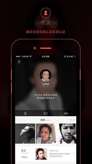 我们希望通过严谨、缜密、用心的设计,通过“信用”这个概念作为我们APP的血液,来建立一个高逼格、真实、可靠、安全、诚信的社交环境。