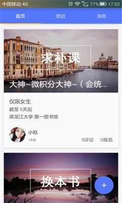 书趴这是一款专为大学生设计的移动社交软件。该软件的主题是图书馆。用户可以与喜欢阅读的朋友交朋友,也可以与喜欢阅读的朋友预约去图书馆或出去玩。在这个软件的首页上有很多来自男人和女孩的邀请!让用户在学校早期找到自己的爱。