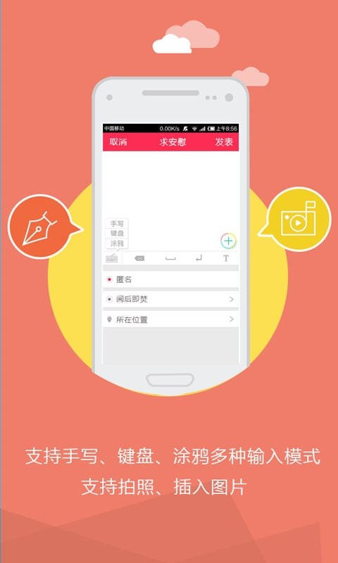 工作生活中的种种不悦让你压抑的无法自拔,可是却找不到发泄的缺口,找人说、发朋友圈,怕熟人知道,怎么办?来“求安慰”吧,不同于现有主流的分享模式,求安慰主要打造的是陌生人的情感交流平台。APP使用者将自己的心情描述出来,并将此信息发送到公共区域或通过私信传递给某个人,以寻求他人的安慰。内容题材不限,但会对某些敏感词语或广告等进行限制。