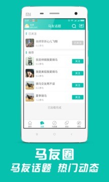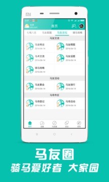马友圈,骑马爱好者私有领地,骑马爱好者的乐园。马友圈app将所有骑马爱好者凝聚到一起,大家平时可以晒晒靓照、谈谈热门话题、认识一下身边还没有见过面的马友、约马友聚会、约马友骑行、了解马场优惠活动、与马友沟通经验等等功能。马友圈,让您动动手指就可以了解到骑马爱好这个大圈子。