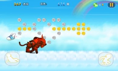1、拥有变化多端的画面场景、丰富劲爆的游戏玩法、趣味十足的音乐音效,游戏的玩法和天天酷跑一致。