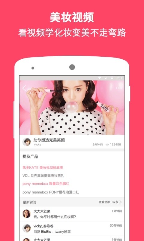 mua美妆app专为爱美人士打造,你可以在这里咨询化妆品相关的问题,也可以在这里寻找聚合话题、关联单品,就算是化妆菜鸟的你也可以变为美丽的达人哟~女人怎么可以不化妆呢!