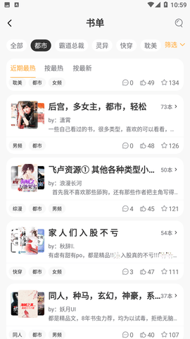 热门品类,如都市双文、浪漫穿越、奇幻修炼、武侠世界等