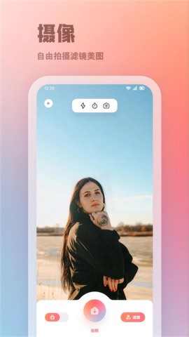 0.3秒一拍即美,专为自拍而设计,小巧快速,实时美肤滤镜,选择你最自然的美丽!