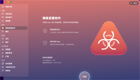 Mac上有病毒吗?如果您尝试使用CleanMyMacX进行Mac清洁,则不在您的身上。它可以抵御恶意软件,广告软件,勒索软件以及所有特定于macOS的软件。找到问题后,应用会立即将其删除。我们定期更新我们的恶意软件数据库,CleanMyMacX的保护模块总是让您回来。