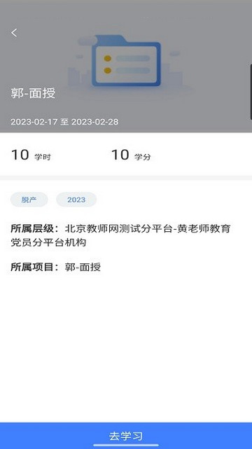 学习:可以查看学员参加的培训项目,通过培训项目可以完成课程学习的考核环节;