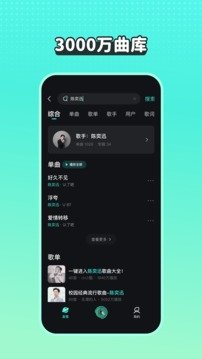 3千万曲库,流行、网红、古风、动漫、怀旧金曲、摇滚、电音、说唱、民谣、日语、欧美、韩语,所有歌曲应有尽有;陈奕迅、林俊杰等大咖全部网罗;
